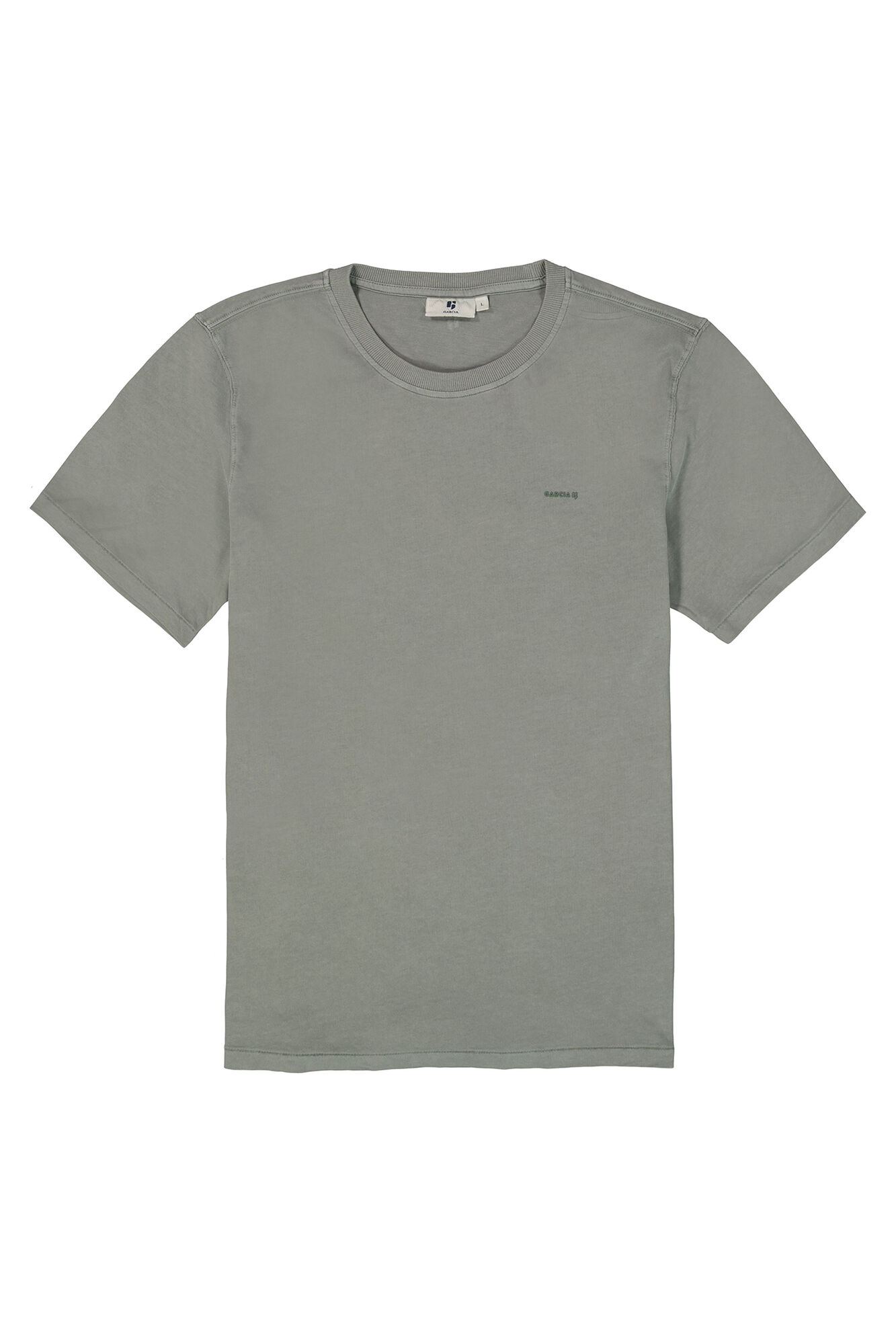 Tiene mangas cortas, cuello redondo y corte holgado.
