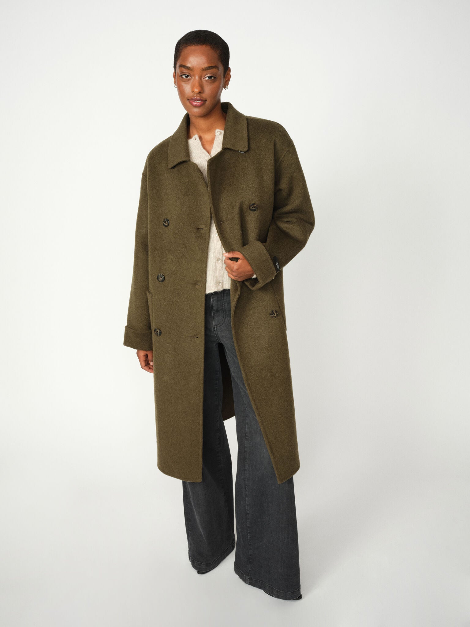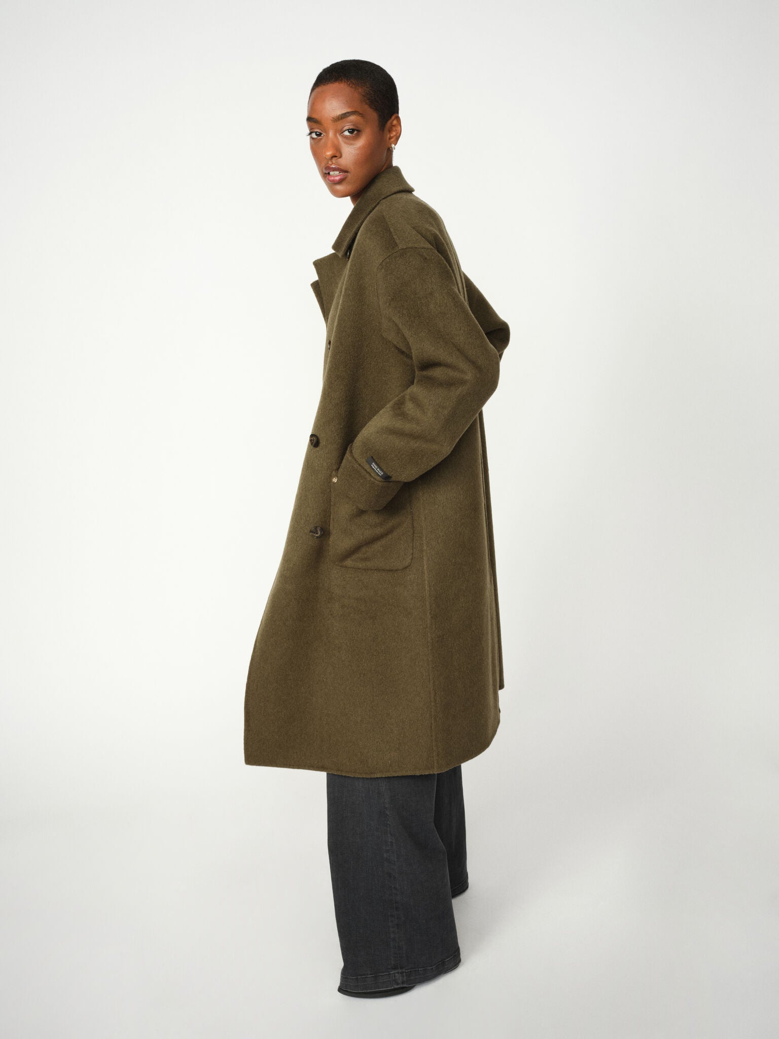 Con cuello clásico y cierre de botones, este abrigo es el equilibrio perfecto entre artesanía de lujo y elegancia natural.