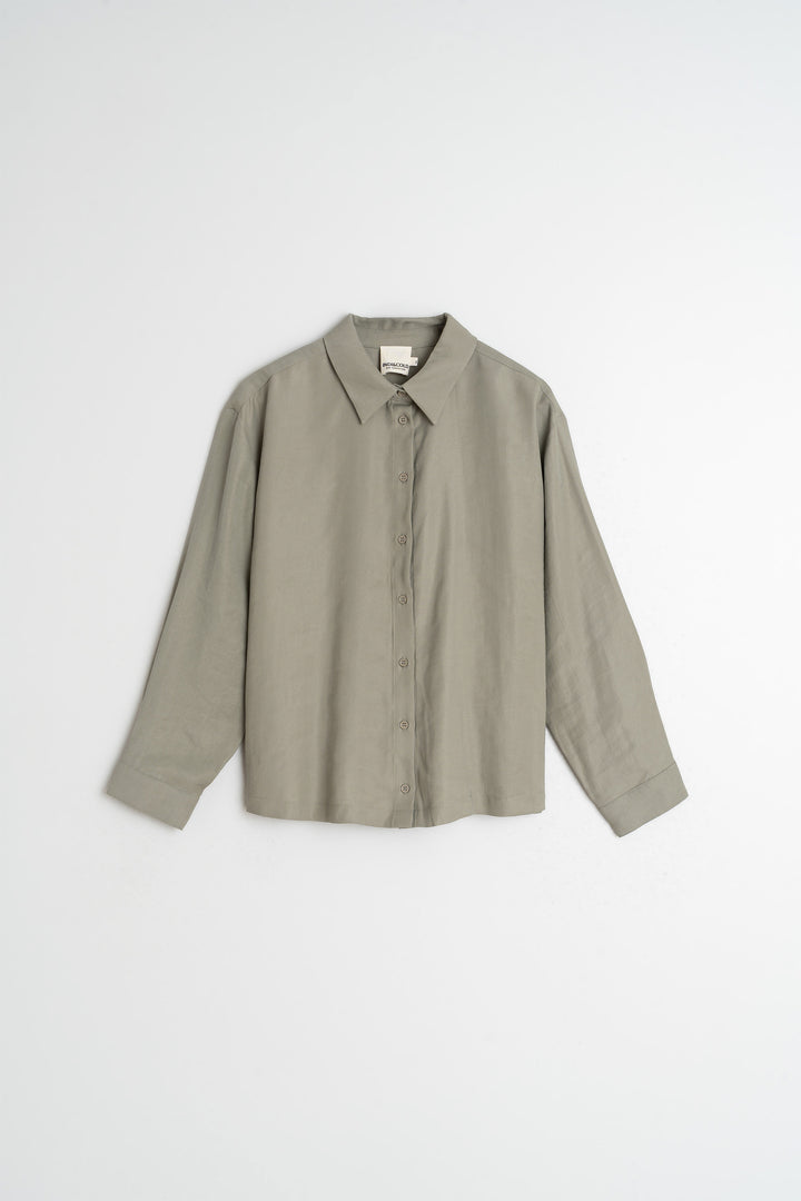 Una camisa de corte clásico con un tejido súper liviano y mucha caída por su composición de modal.