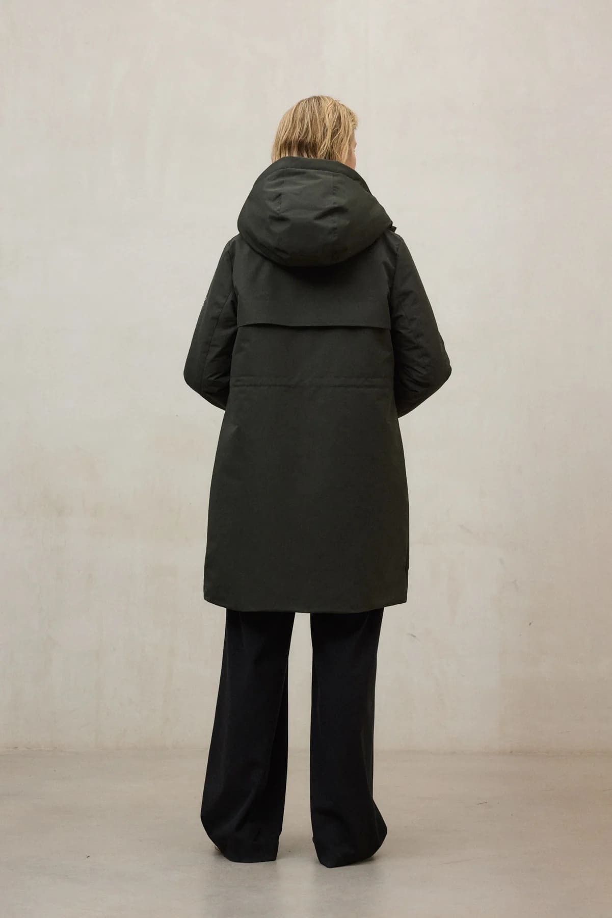 El Abrigo Glamour está fabricado con un tejido principal de 58% Poliéster reciclado (Hilo del mar) y 42% Poliéster reciclado (Tex2Tex). Tiene un forro de 100% Poliéster reciclado y relleno PrimaLoft® de 100% Poliéster reciclado. Nuestro hilo del mar de poliéster reciclado se produce con las botellas y otros residuos recogidos del océano, gracias a la Fundación Ecoalf, la cual tiene la misión de limpiar los océanos de basura marina. El poliéster reciclado puede provenir de botellas de PET post-consumo o de residuos textiles (sobrantes de producción o prendas usadas). Conseguimos cerrar el ciclo de la Economía circular y evitar que estos residuos acaben en vertederos o incineradoras o el downcycling, revalorizando los residuos textiles.