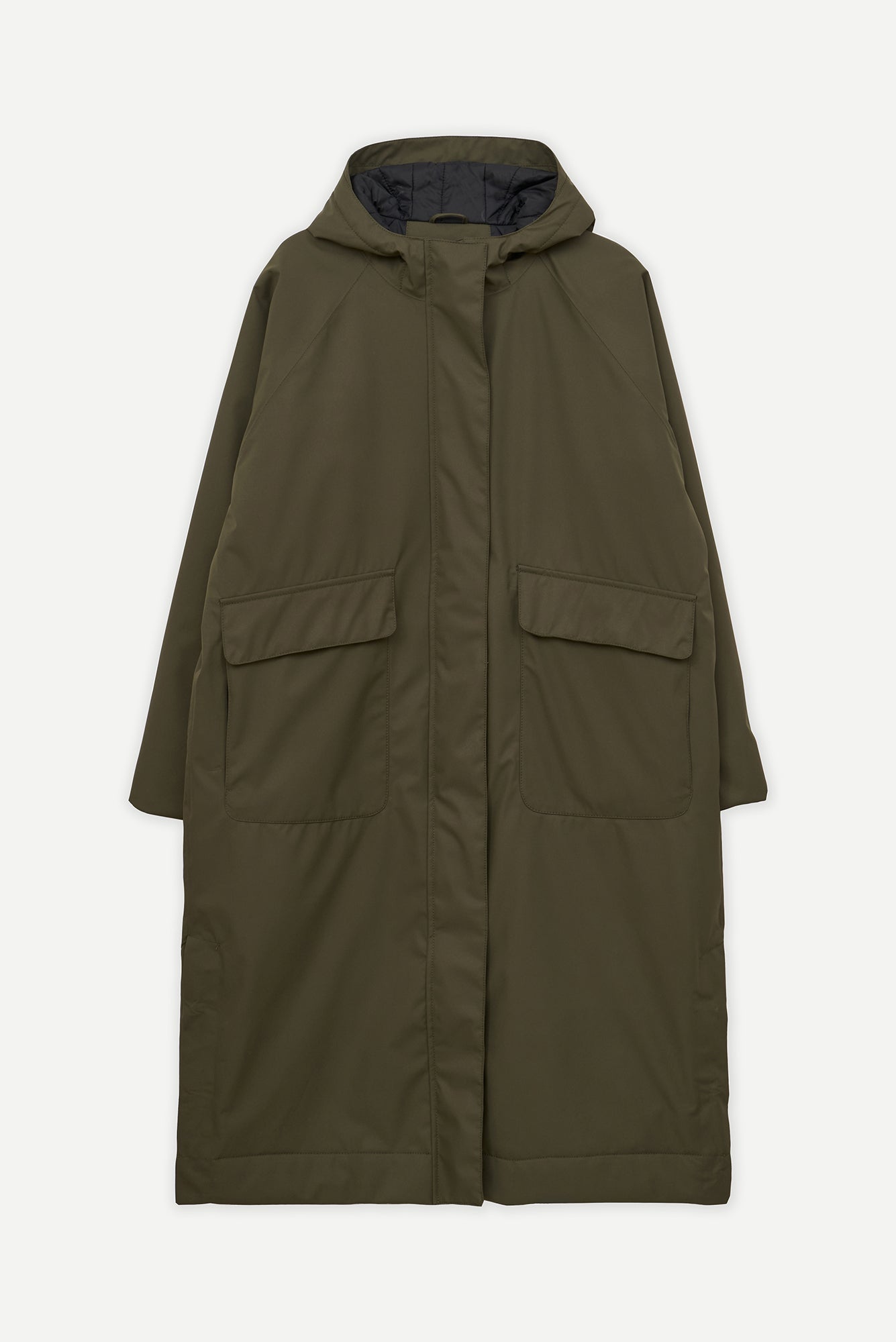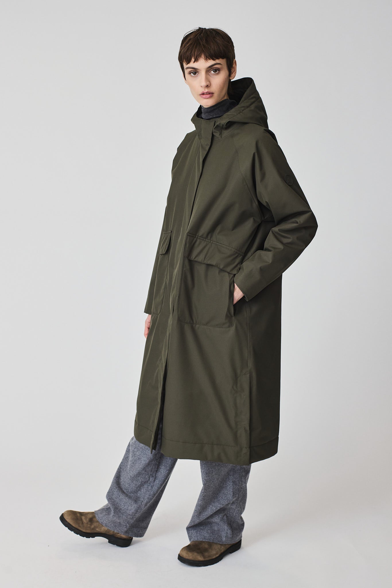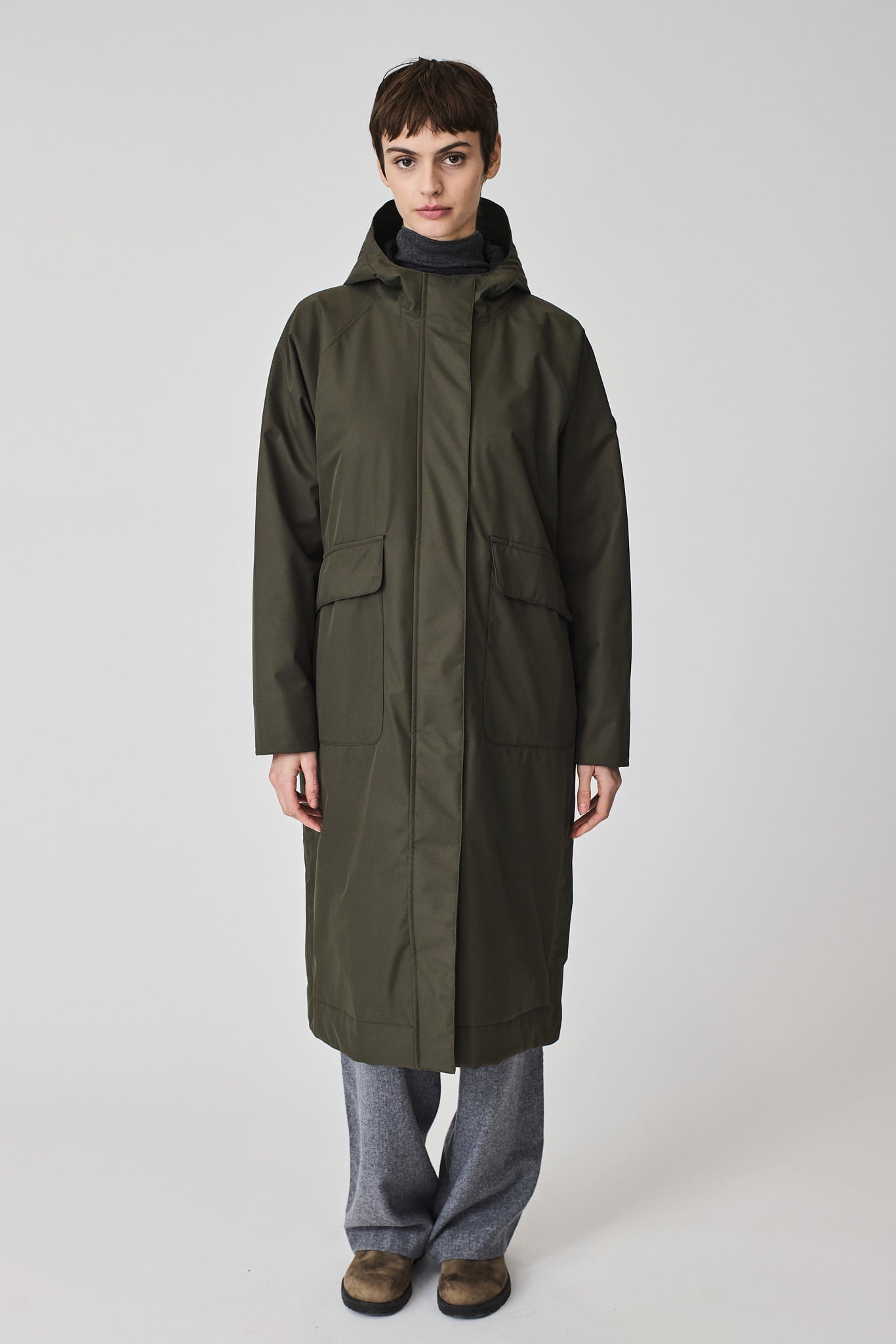 Confeccionado en tejido Twill impermeable y con costuras totalmente selladas, el abrigo acolchado Torm presenta un corte ligeramente oversize que aporta un aire moderno y sofisticado. Su aislamiento ligero, transpirable y sin plumas lo convierte en la prenda ideal para los primeros días fríos de la temporada. Las mangas raglán y los bolsillos plastrón con solapa combinan funcionalidad y diseño depurado. Ligero y cómodo, es el aliado ideal para mantenerte abrigado y seco durante los primeros días de la temporada de otoño/invierno.