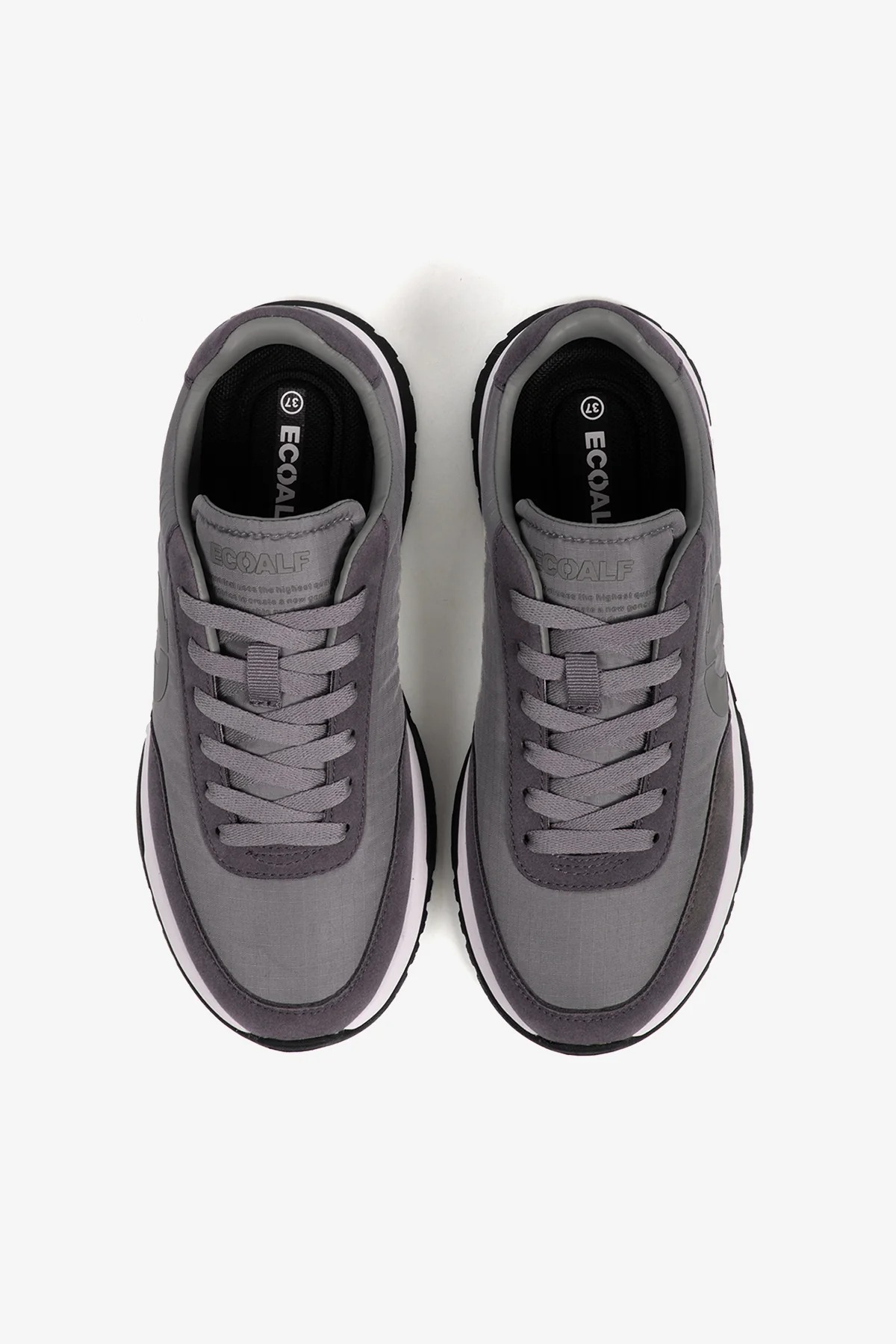 Las zapatillas Ventura están fabricadas con un tejido principal de 100% Poliéster reciclado. El poliéster reciclado reduce el uso de recursos fósiles, emisiones de CO2 y consumo de agua y energía, al reutilizar residuos plásticos como botellas PET, manteniendo las propiedades del poliéster virgen.