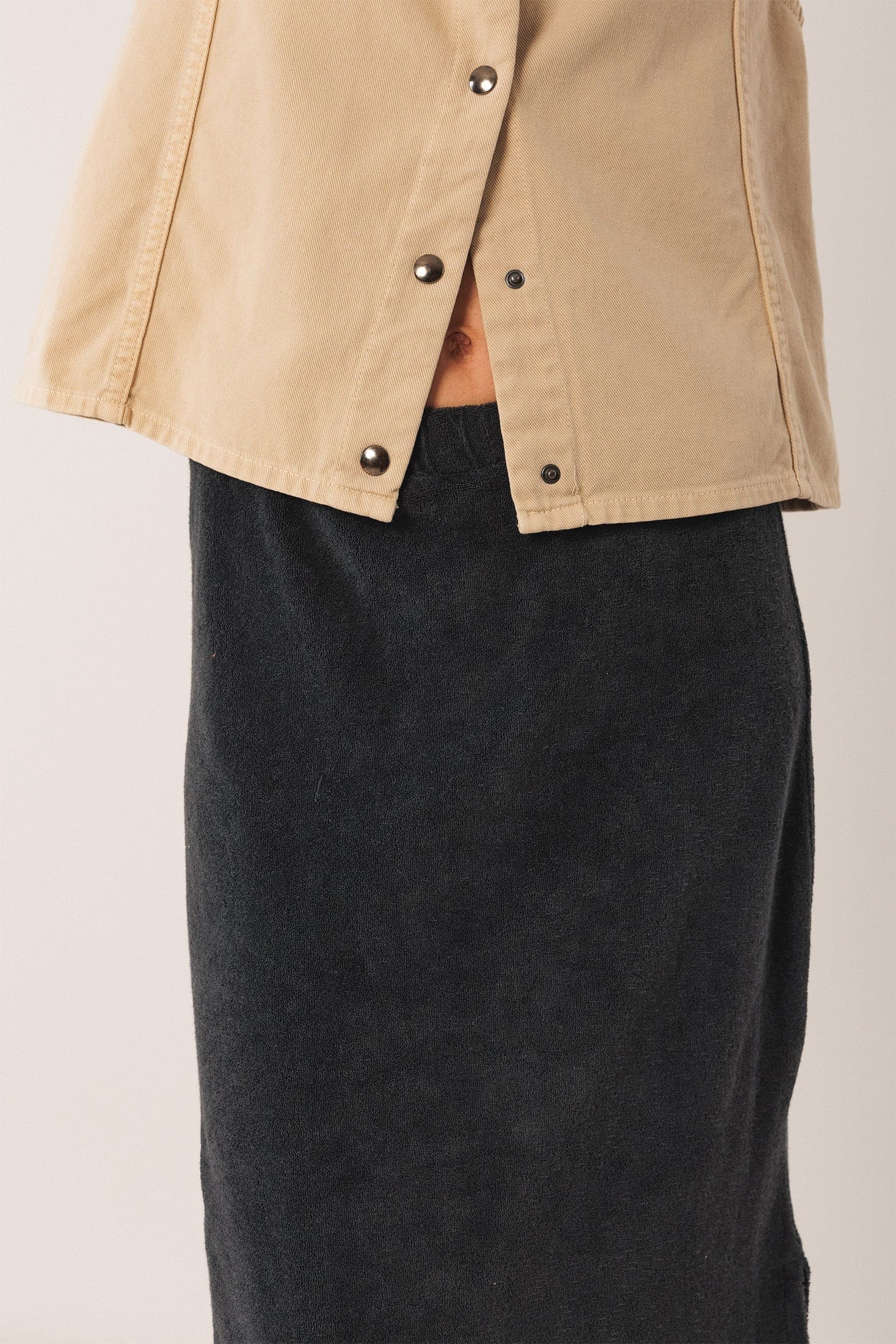 Su composición tipo toalla la convierte en la falda comfy de la temporada.
