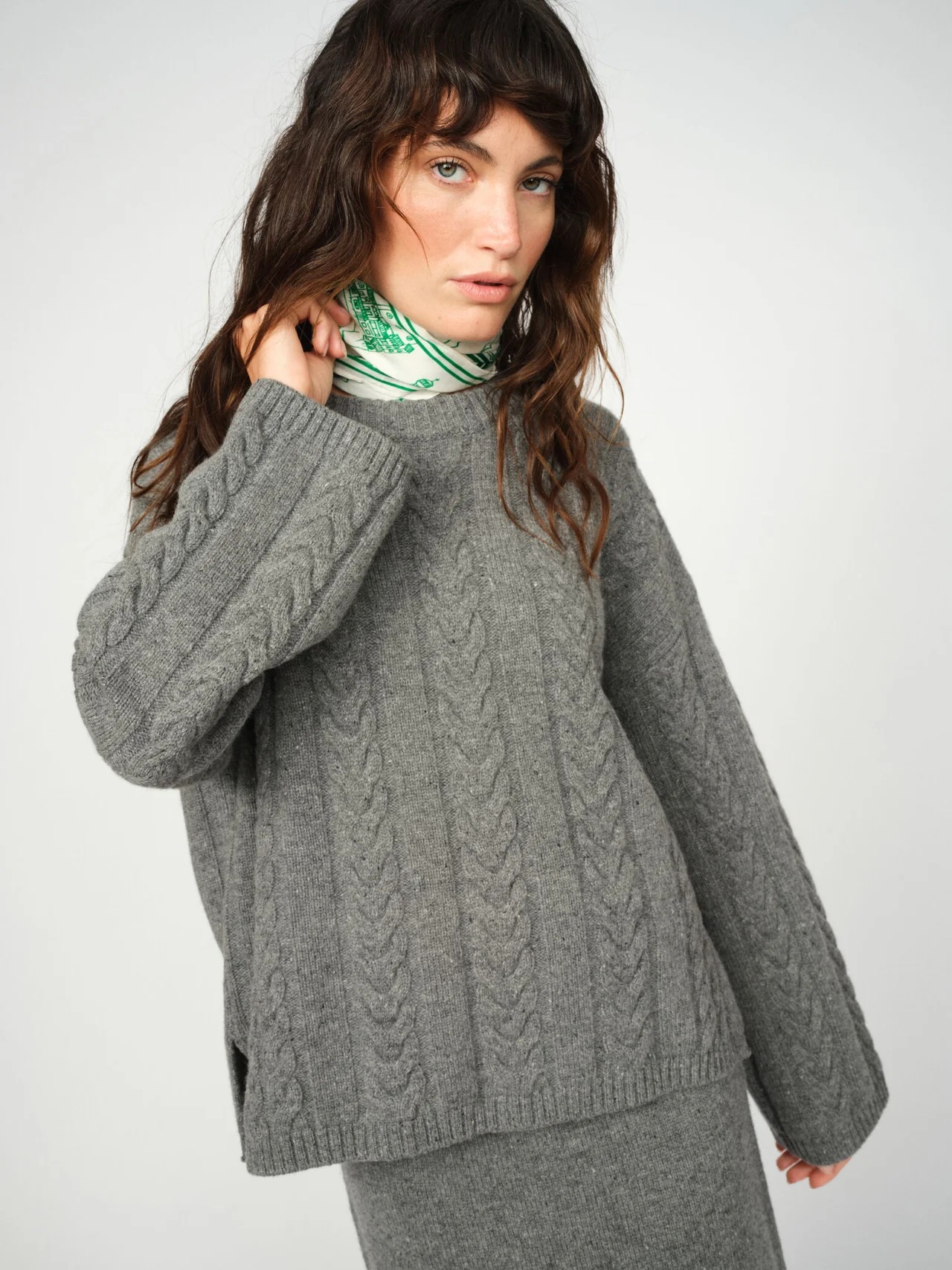 Los delicados detalles de punto trenzado le aportan profundidad y sofisticación, convirtiéndolo en una prenda esencial para el día a día.