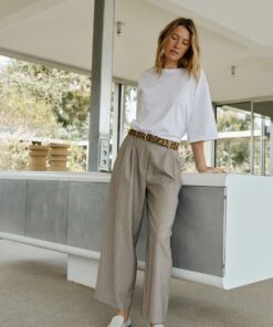 • Cintura media con pinzas y cierre de cremallera y botón oculto